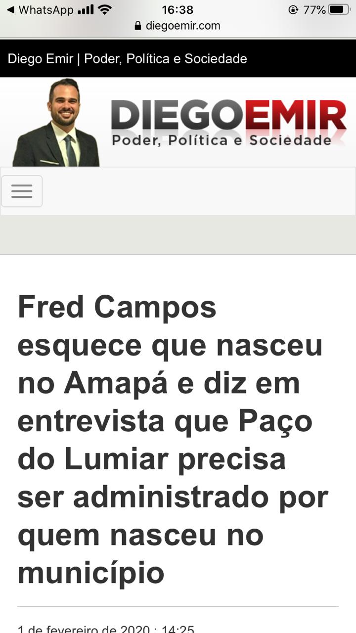 Ora caro leitor, como Fred pode falar de forasteiro, se ele mesmo é um. Puxando a ficha do pré-candidato que anda ”arrotando moralidade”, descobriu-se que, Este não é Luminense e o pior, nem maranhense. Fred tem filiação de nascimento no Estado do Amapá, portanto é um forasteiro nato.