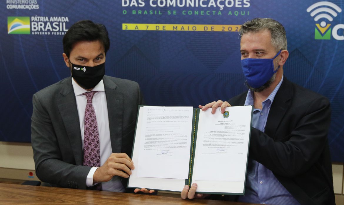 O ministro das Comunicações, Fábio Faria, assinou na tarde de hoje (4) portarias de criação de dois programas relacionados à rádio e teledifusão. A primeira institui a criação do programa Digitaliza Brasil, que viabiliza a segunda fase de transição do sinal de televisão analógico para o digital.
