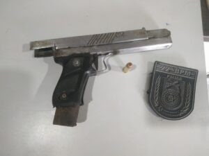 Uma guarnição da Polícia Militar foi acionada e prendeu o suspeito que estava com várias lesões após ser agredido por transeuntes. Os militares conseguiram apreender uma motocicleta, uma arma de fogo de fabricação artesanal e objetos da vítima.