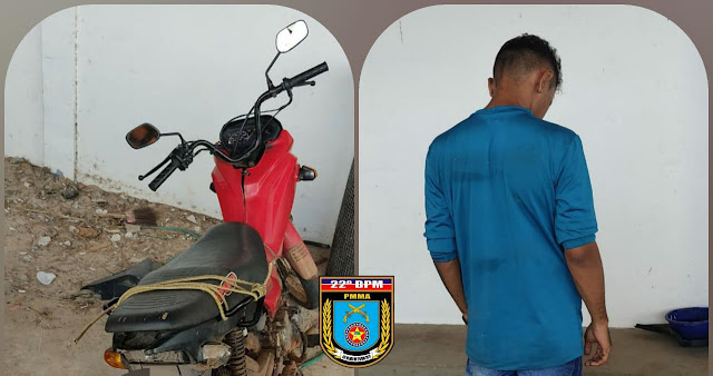 De acordo com informações da PM, a guarnição realizava patrulhamento quando avistou o suspeito em uma moto Pop. Durante a revista pessoal foi constatado que o veículo é produto de roubo.