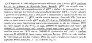 Ela é sobrinha do ex-deputado estadual Stênio Rezende, apontado como articulador das emendas suspeitas. Em depoimento, Larissa relatou o envolvimento do tio na condução do esquema.