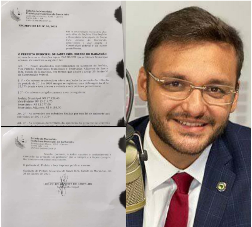 O prefeito do município de Santa Inês, a 247 km da capital maranhense, Felipe dos Pneus (Republicanos) quer aumentar o seu próprio salário e de seus auxiliares.