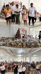 Um dos momentos mais aguardados foi o sorteio de cestas básicas e presentes, que levou emoção e esperança às famílias presentes.